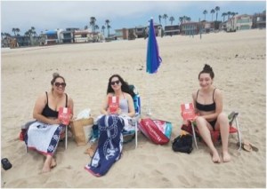 Three new believers rejoice with their new books after dedicating their lives to the Lord. Newport Beach, California